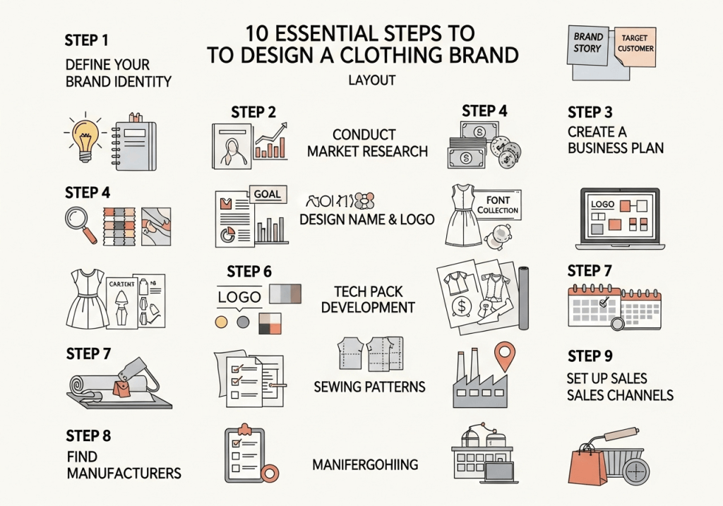 Do you know how to design a clothing brand? It’s all about defining your brand identity, choosing your brand’s personality, finding a custom fashion designer and manufacturer, and planning your sales channels.