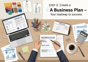Decide where you will design your clothing and calculate the initial investment you need. Include all these points to make your business plan proactive.